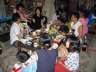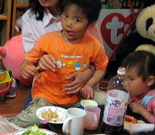 きょーこさん、にわとりさん、 りょうたろー親子、ぽこ親子いらっしゃーい みんなで乾杯♪ 「はじめまして〜〜」 |