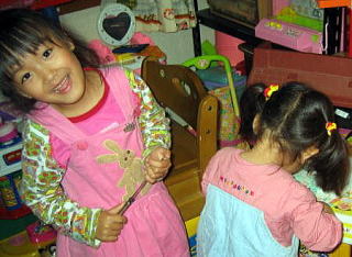 めがどんと さきちゃんは ねんどを包丁で切っている。 さきちゃん、真剣!しばらく集中して 遊んでたよ |