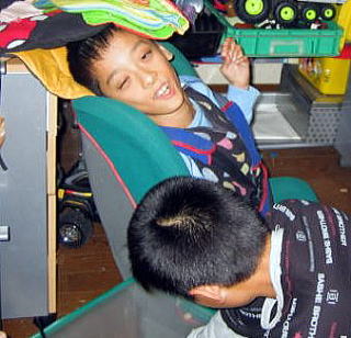 まだまだ甘えん坊のりょうたろー ママのおひざを占領中〜(笑) |