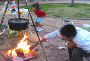 キャンプで慣れた焼肉とおでんを準備(笑)
