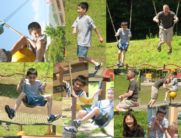 ターザンロープが気に入ったようで何十回もパパに「プッシュ」してもらって