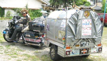 サイドカーに、幌馬車にでっかいつのヘルメット〜