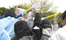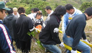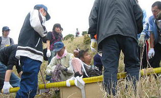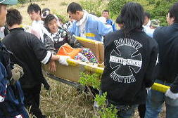 綱も用意されます。消防さんと自衛隊の人がてきぱき準備します