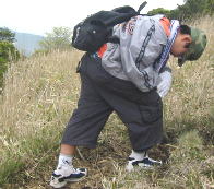 ぜいぜい、、自分ひとりでもやっとの山道、