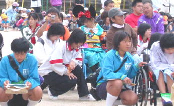 雨でびっしょり 応援する子も濡れちゃって寒そう、、