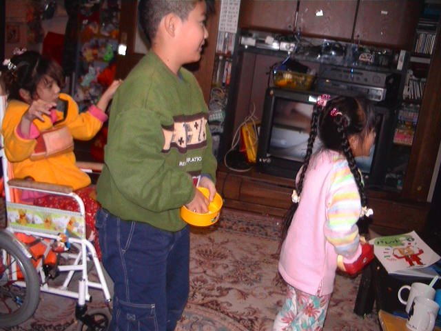 毎年節分で大泣きするが今年は半分泣きながらもマメをもって大声で立ち向かっためが丼。