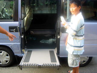 ほんとは、普通車のリフト車(TOYOTAハイエース)がほしかったが、高すぎて(250-300マン近くなる)我が家には無理。。汗