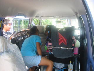 ちょうどお父さんの軽自動車が10万キロは超えてて 車検だったので軽自動車の介護車をかうことになった。