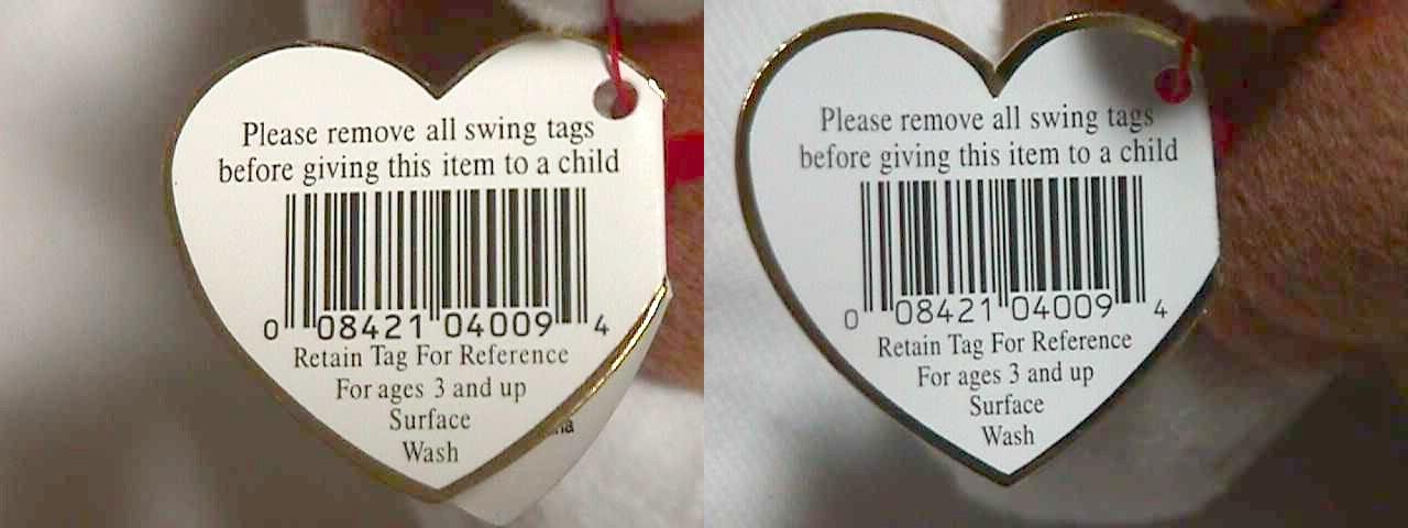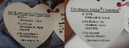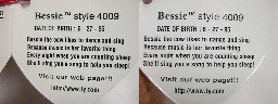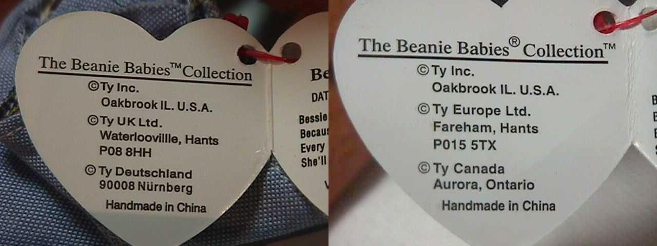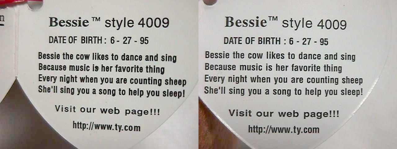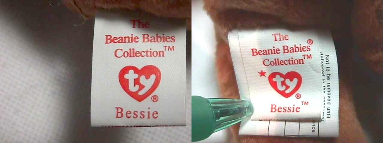 右が本物のタシュタグ 偽物独特のBessieの字体 |
