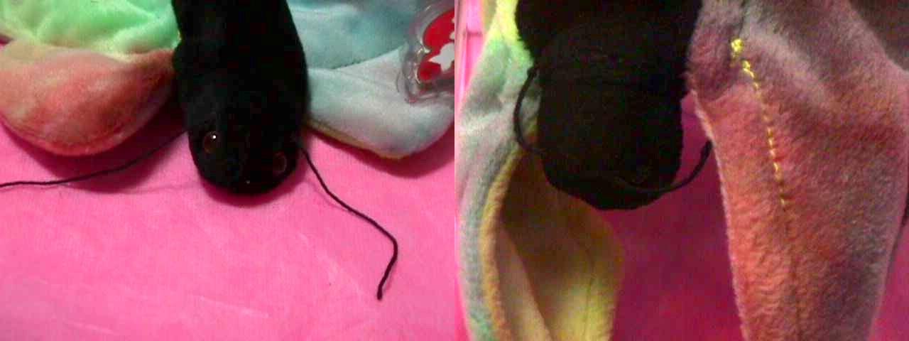 右が本物。 目が刺繍。 わたしの偽物は 目がついていて かわいいよ〜〜〜(笑) |