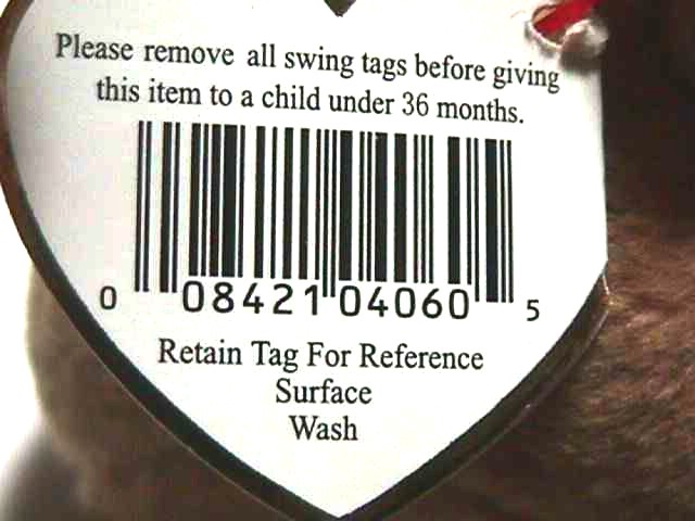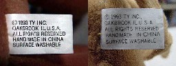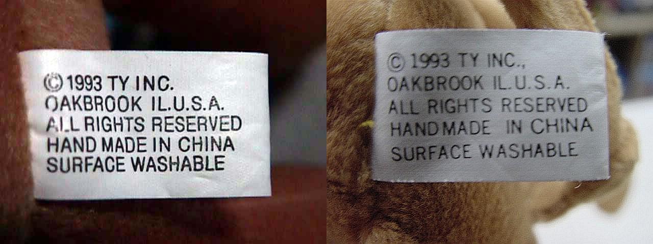 偽物のタグです。 本物と比べてみると、 左部分の書いている事が 全然違います。 |