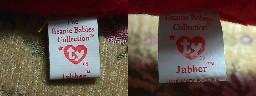左が私の持っている偽物 写真では、わかりにくいかもしれませんが Jabberという字体と上の字体も 縦長です |