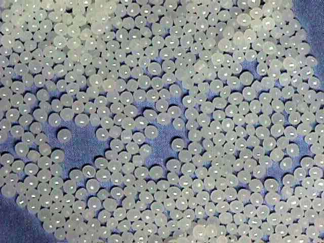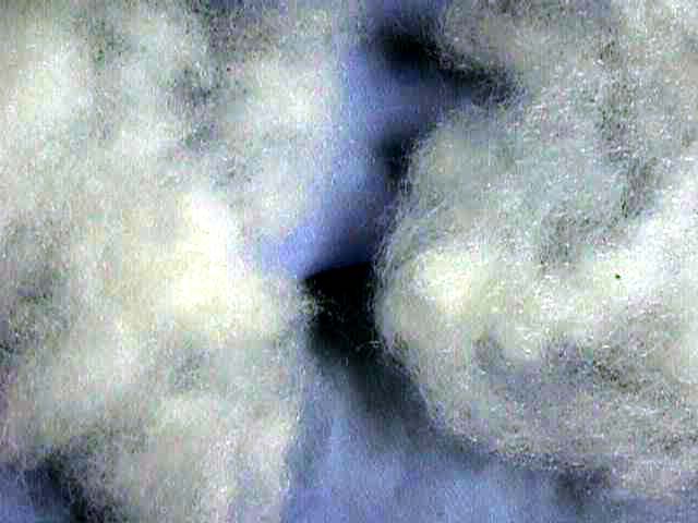 中のわたです。右がにせもの。 偽物はちょっとあらっぽく、 本物の方はきもちよいです。