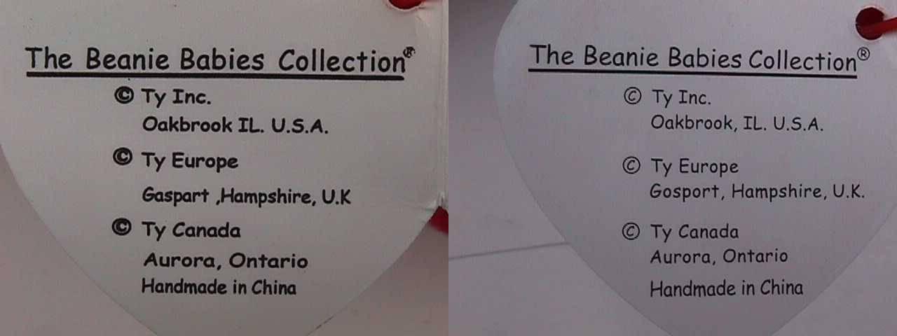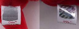 右が本物のタッシュタグ 偽物は「ねずみ色」 |
