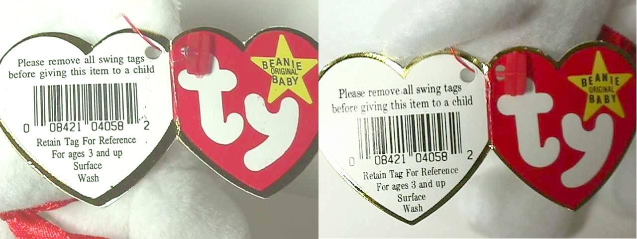 偽物のアップ リボンの質と 鼻の色が少し違う。 |