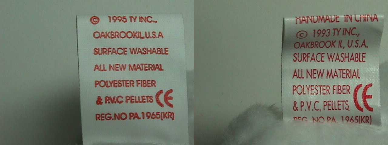 右が本物タッシュタグ 偽物は字体が少し縦長 |