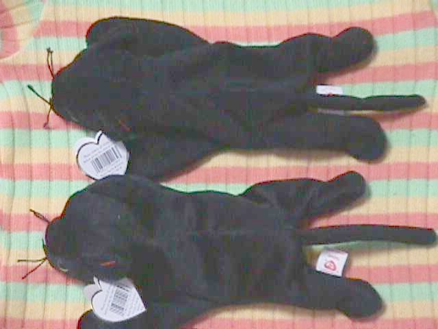上が本物 下がにせもの 生地がつやっぽいものがにせものです