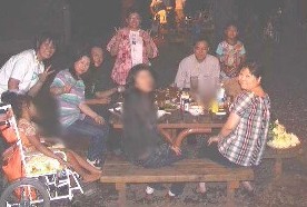 | うれしそうにピースする本ちゃんと左がkiyogさん 本ちゃんの右が旦那さん。 みこの後ろがりえちゃんとあいがさん。 手前のこっちむいているひと右がよりこさんと 黒い服がNO22さん |
