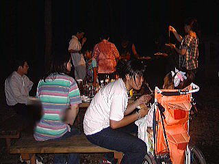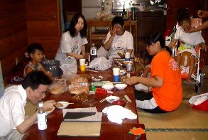 | 朝ご飯。だんごやさんがもってきてくれた おこわとだんごと パン あたしゃショック。。フイルム入れ忘れたことに ショック。。こんなところでドジるなんて。。。(汗) ということで、ごめん、ほんとにごめん。 皆ポーズきめてくれてた写真もない、、 今回デジカメの写真が唯一の思い出です。。 |