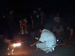 | 「ここでは打ち上げ花火しないでください」と 警備員?から注意されました〜 打ち上げ花火も手で持てば手持ち花火じゃ(笑) 花火から戻ると猫がいっぱい〜〜 ひえ〜〜ケーキも魚もたべられていた〜〜(涙) |