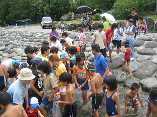 清川村の 川遊びフェスタの「あゆつかみどり」開催♪