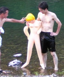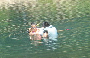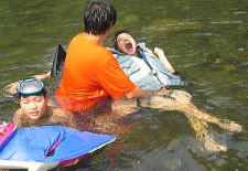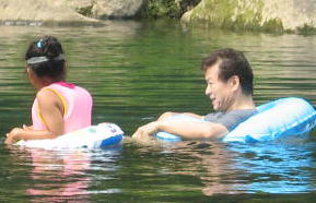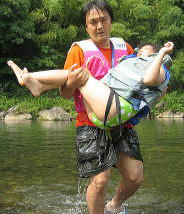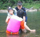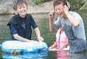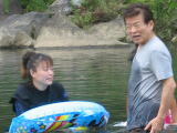 川の流れにさからって、必死にひっぱるじーちゃん・血管切れるで〜笑