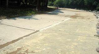 手前の子供が歩いている河原も去年は水がありました、水不足