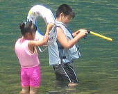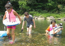 川は突然深くなっている場所があるので小さいお子さんは注意。