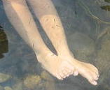 足のまわりにあつまるぶつぶつは、「めだか」だよ。いっぱーい集まってくる