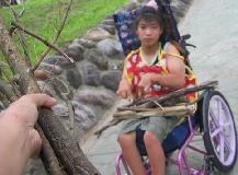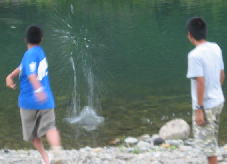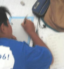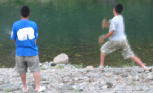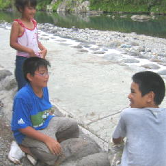 やっと川から あがって、子どもは宿題??すげー。宿題もってきちょる