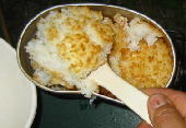 ご飯がこげた。。三つ葉もやりっぱなし???(爆)