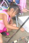 めが丼、、昨日の残りの花火をみつけて、、「見えんなー」・・昼間ですから。。笑