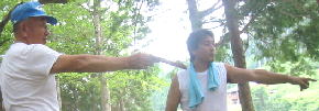 「去年の台風でな、あそこの木がたおれちょるとこまで水がきて、ここも(テントサイト)水に