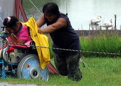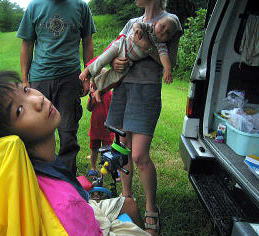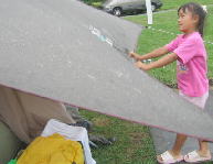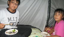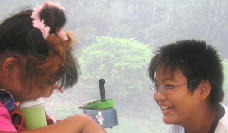 雨がいっぱいふりだして、タープの中で過ごすことに