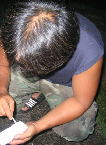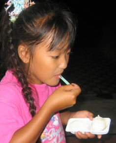 家からうさぎのえさをもってきて、えさあげ中
