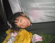 なーんで首だけテントから出てるのぉ?