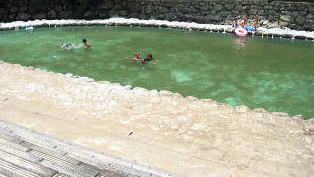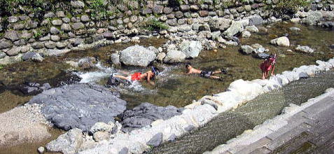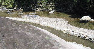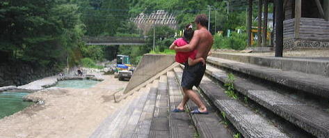 キャンプ場の河川プール。階段おりてすぐ