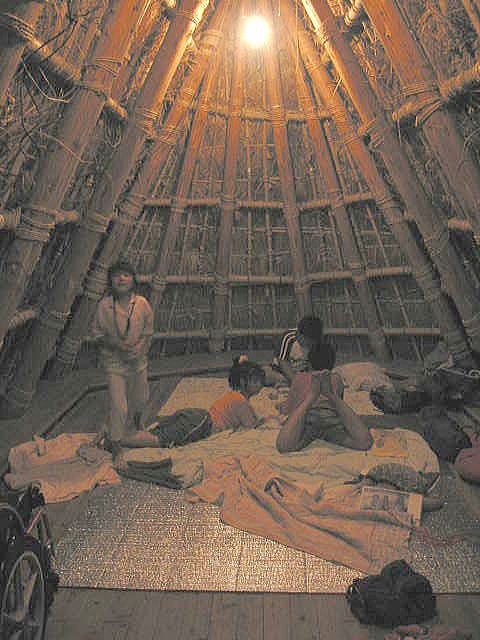 今回はテントは、やめて めずらしい竪穴式住居に泊まった!