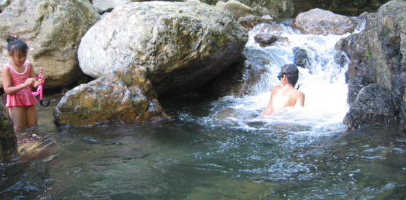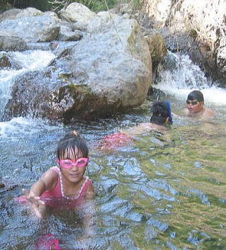 ここが最初の上流へ行くいきどまり、、浅いので親は安心