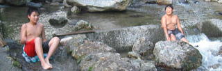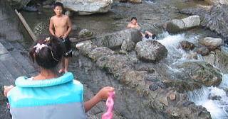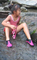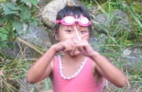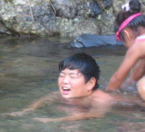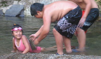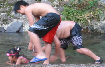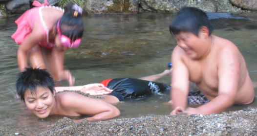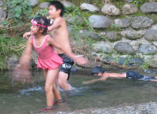 食べたあとは夕方の川遊び〜水が冷たい