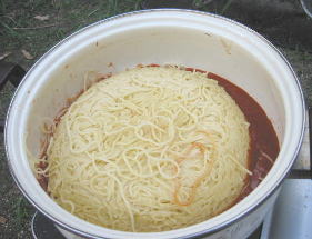 じゅぅ〜〜〜 牛丼スパゲティできあがりいい