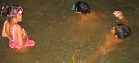 まっくらになるまで水遊びを楽しんだ子供たち