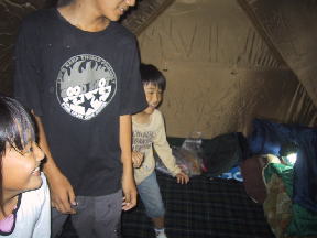 食ったら「もう用はない」と、、さっさとテントに入る子供たち