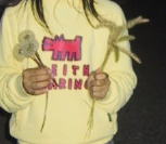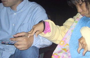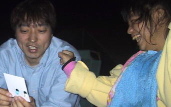 行って「おとーさん、ねちょるけん、。なに???なに??」