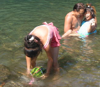 パパは泳ぎは苦手〜なので私が泳ぎ担当ですぅ〜〜