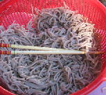 朝は、、ざるそばに、焼き物、人参、、、