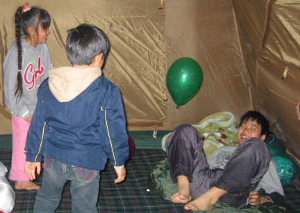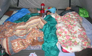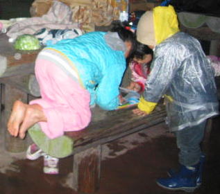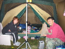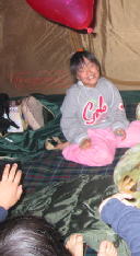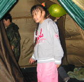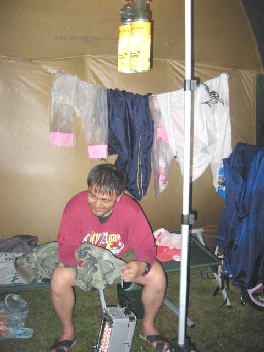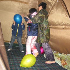 げー!!ぬれたまま遊ぶとテント内びしょぬれ〜