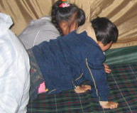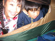 「子供は こっちで寝るけん、大人は、入ってこんでよー!おやすみー」