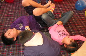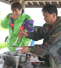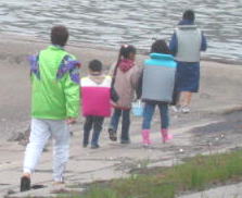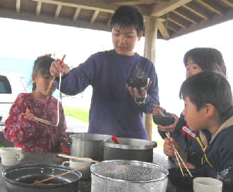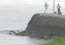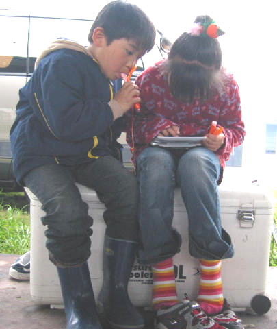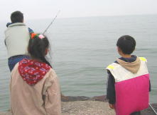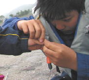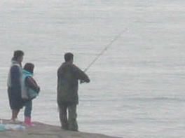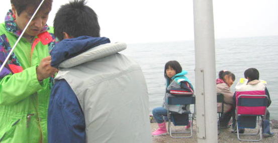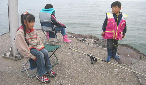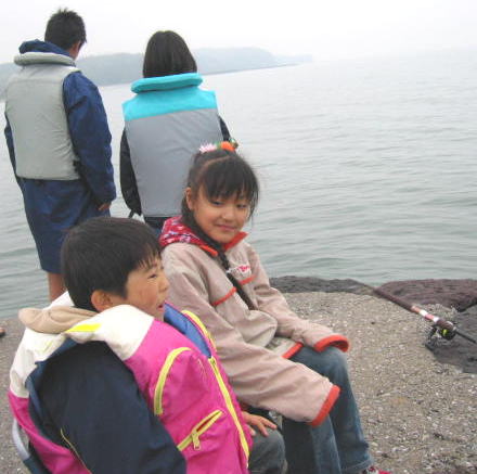 「さおの先っぽがピクピクなったら魚が つついてるからね〜よくみてて」