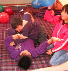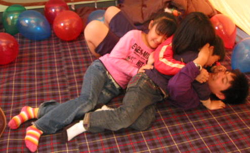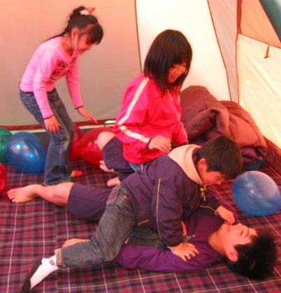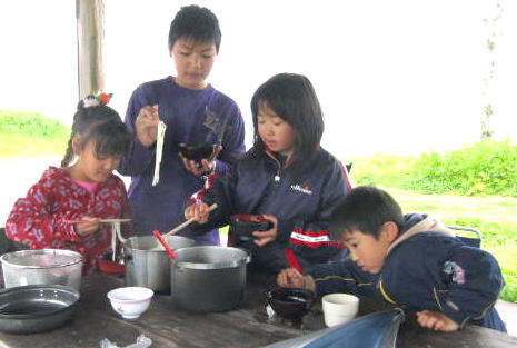 母「はい、ななちゃん、エサつけるの手伝って〜」